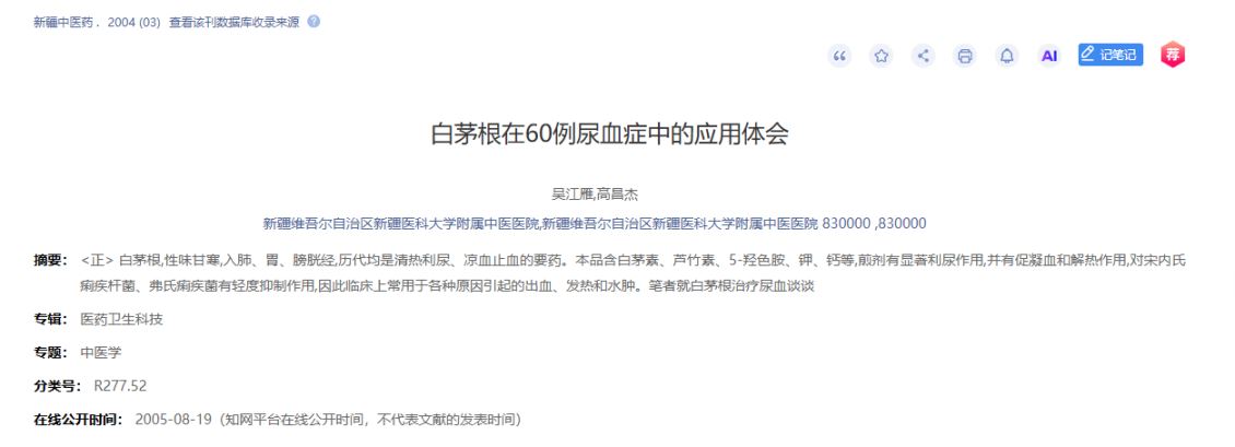 白茅根:泌尿系统的“清热利尿剂”